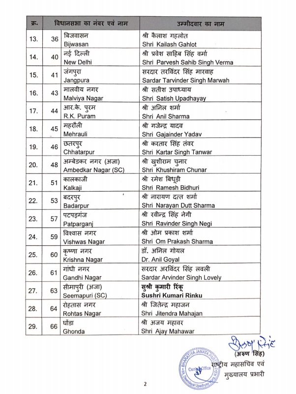 उधर, भारतीय जनता पार्टी (बीजेपी) ने भी अपनी पहली लिस्ट जारी की है। बीजेपी ने अपने 29 उम्मीदवारों की सूची जारी की है। भाजपा के बाकी उम्मीदवारों की लिस्ट भी जल्द जारी हो सकती है।