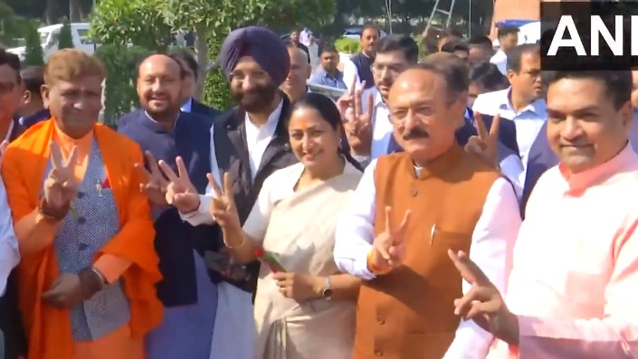 - दिल्ली की 8वीं विधान सभा के पहले सत्र के लिए दिल्ली विधानसभा पहुंचते ही दिल्ली की मुख्यमंत्री रेखा गुप्ता (CM Rekha Gupta) ने विजय चिन्ह दिखाया।