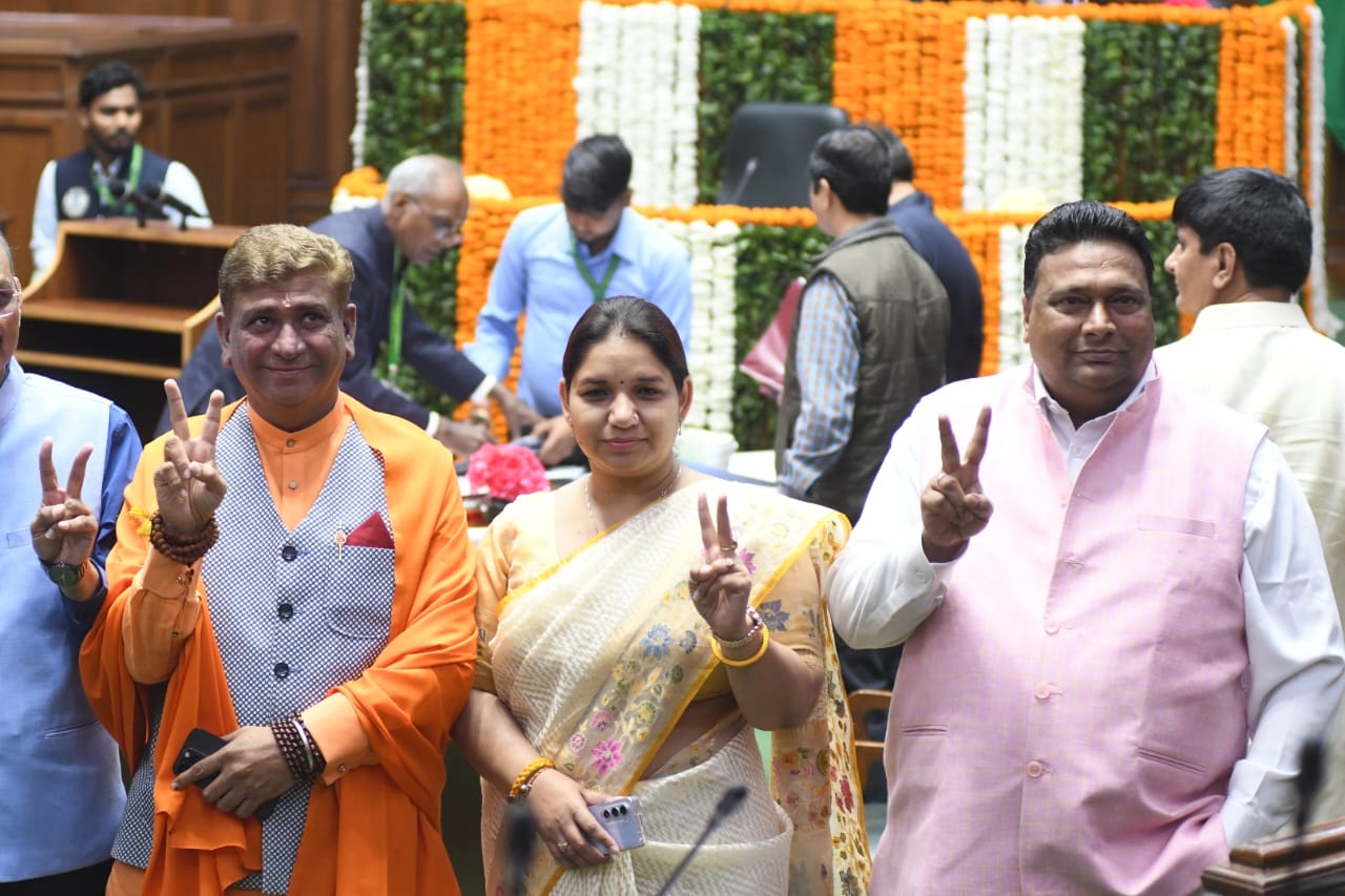 - विजेंद्र गुप्ता माथे पर रोली तिलक लगाकर आए। विपक्ष के भी कई विधायको ने हाथ जोड़ उनका अभिवादन किया। आप विधायक आले मोहम्मद इकबाल और इमरान हुसैन ने उर्दू में शपथ ली।