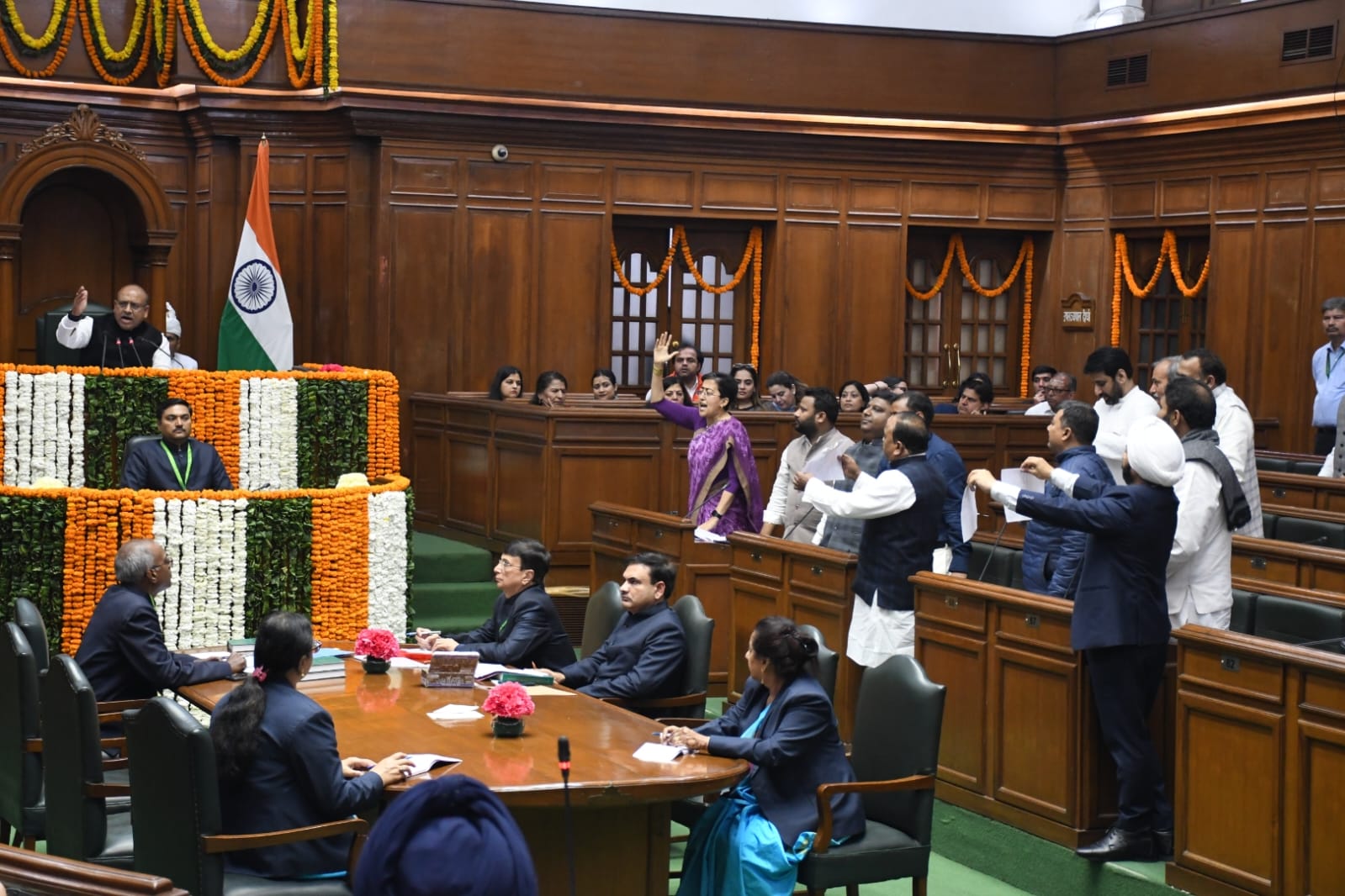 - नेता प्रतिपक्ष आतिशी को अपनी बात रखने के लिए अध्यक्ष गुप्ता ने कहा। आतिशी ने मुख्यमंत्री कार्यालय से भगत सिंह बाबा साहब की फोटो हटाए जाने का विरोध किया। आप के विधायकों ने इसको लेकर सदन में हंगामा किया।
