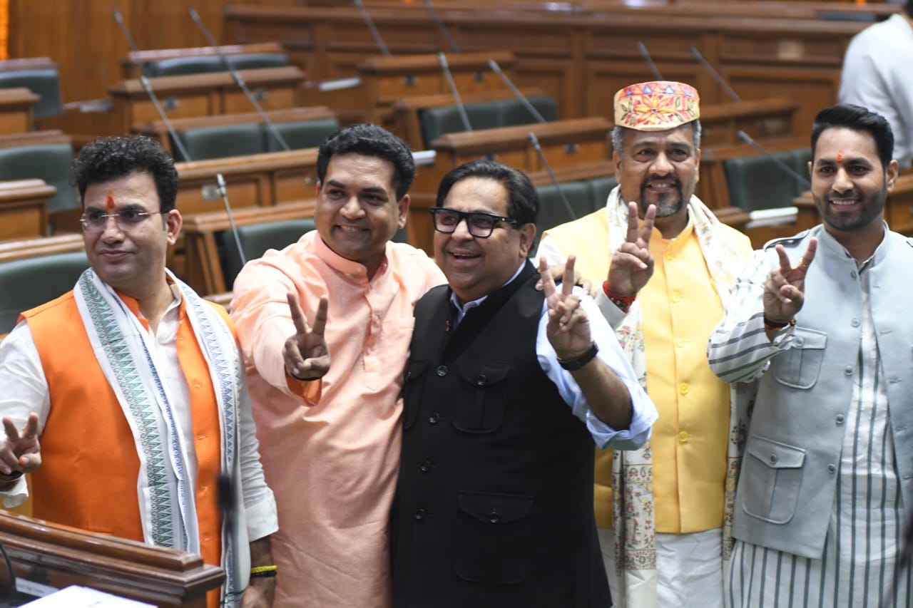 - विजेंद्र गुप्ता में खड़े होकर हाथ जोड़ सभी का अभिवादन स्वीकार किया। मुख्यमंत्री रेखा गुप्ता विजेंद्र गुप्ता को उनकी कुर्सी तक लेकर गईं। विपक्ष की नेता आतिशी भी साथ रहीं।