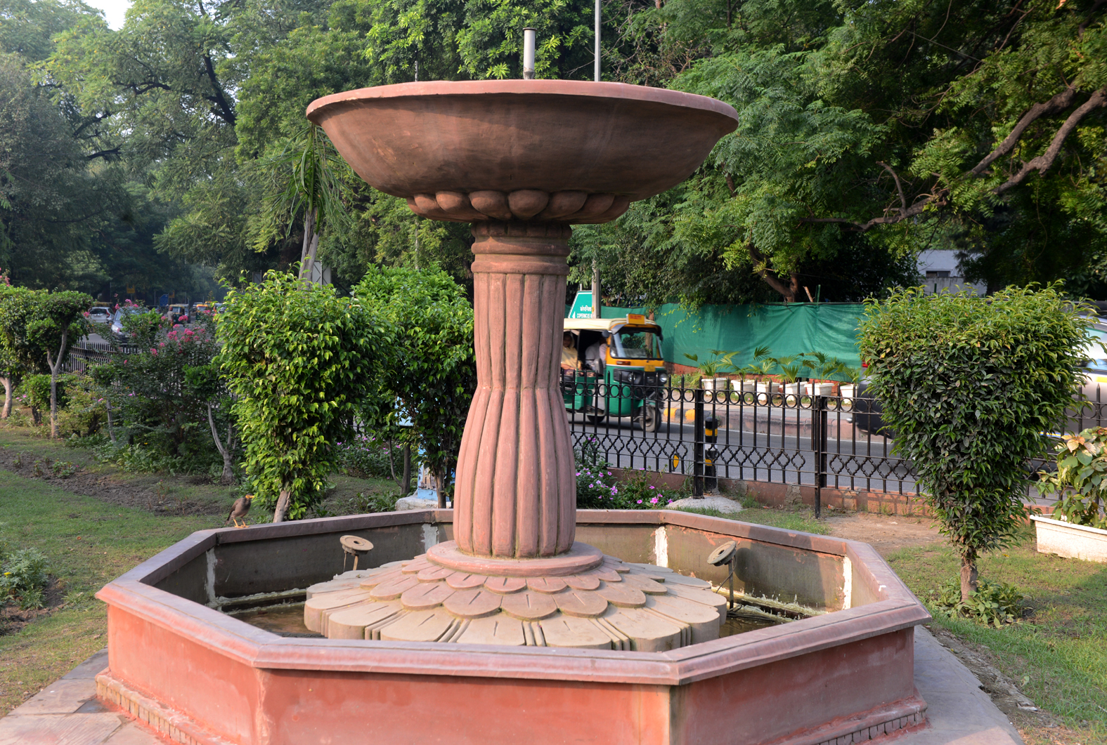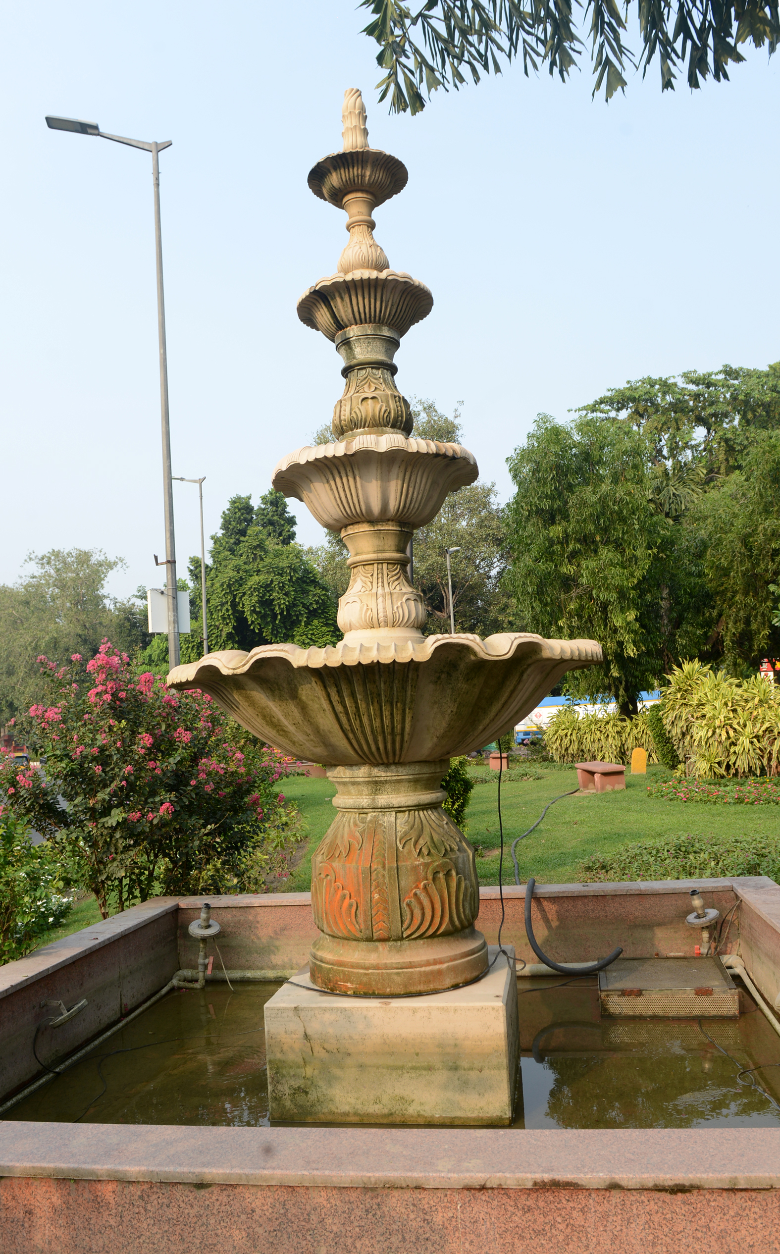 जी-20 के तहत इंडिया गेट सर्किल में सुंदरीकरण कर फव्वारे लगाये गये सोमवार शाम को बदहाल दिखा फव्वारा।