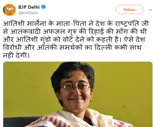 भाजपा ने आतिशी को बताया आतंकी समर्थक, माता-पिता ने की थी अफजल गुरु के रिहाई की मांग