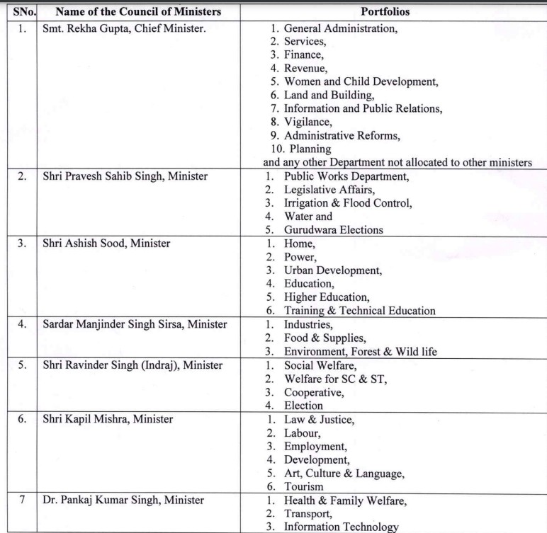 Delhi Cabinet Portfolio: CM रेखा गुप्ता के पास गृह और वित्त विभाग, प्रवेश साहिब सिंह PWD; देखें पूरी लिस्ट