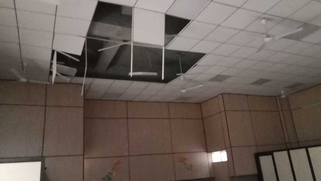 सूत्रों की माने पिछले माह एकाएक हाल की छत झड़ गई थी। हालांकि, इस हादसे में कोई विद्यार्थी व कर्मचारी घायल नहीं हुआ, पर स्कूल प्रशासन ने कार्यकारी अभियंता को इस संदर्भ में पत्र लिखकर अवगत कराया है। जिसमें जल्द से जल्द छत की मरम्मत कराने की मांग की गई है। 14 अक्टूबर 2016 को केंद्रीय सड़क, परिवहन व राजमार्ग मंत्री नितिन गडकरी ने 200 लोगों की क्षमता युक्त इस बहुउद्देशीय हाल का शिलान्यास किया था।