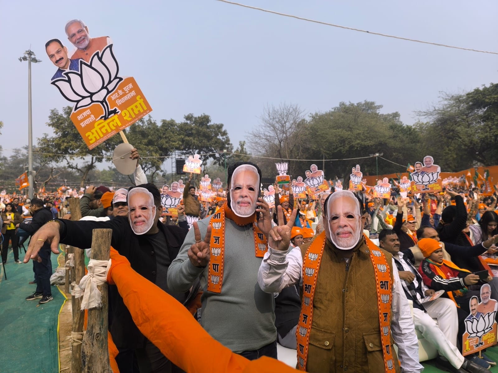 आरके पुरम में पीएम मोदी की जनसभा के दौरान लोग।