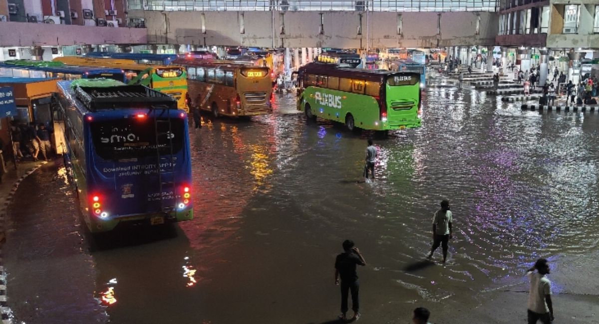 यमुना का जलस्तर बढ़ने पर कश्मीर गेट बस अड्डे पर हुआ जलभराव । चंद्र प्रकाश मिश्र।