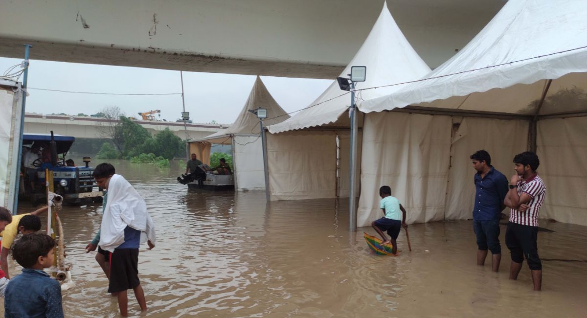 यमुना का जलस्तर बढ़ने पर मयूर विहार के पास खादर क्षेत्र हुआ जलमग्न ।पारस कुमार