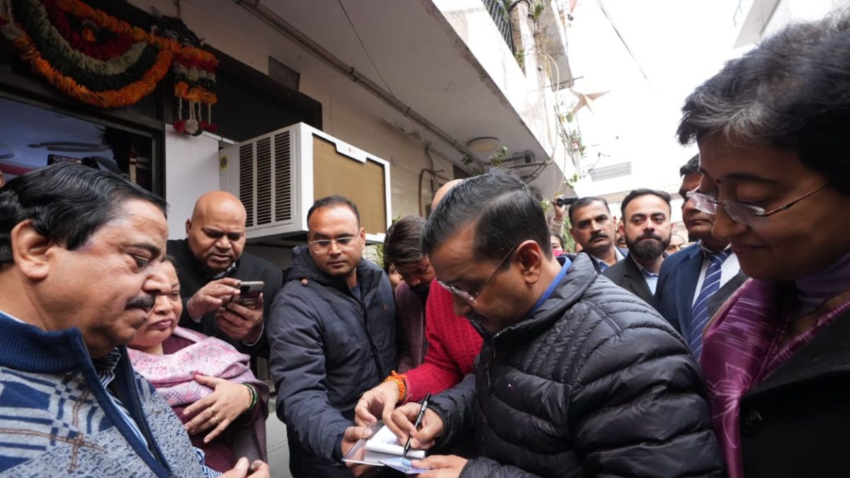 जंगपुरा में संजीवनी योजना के रजिस्ट्रेशन कराते आप संयोजक अरविंद केजरीवाल।