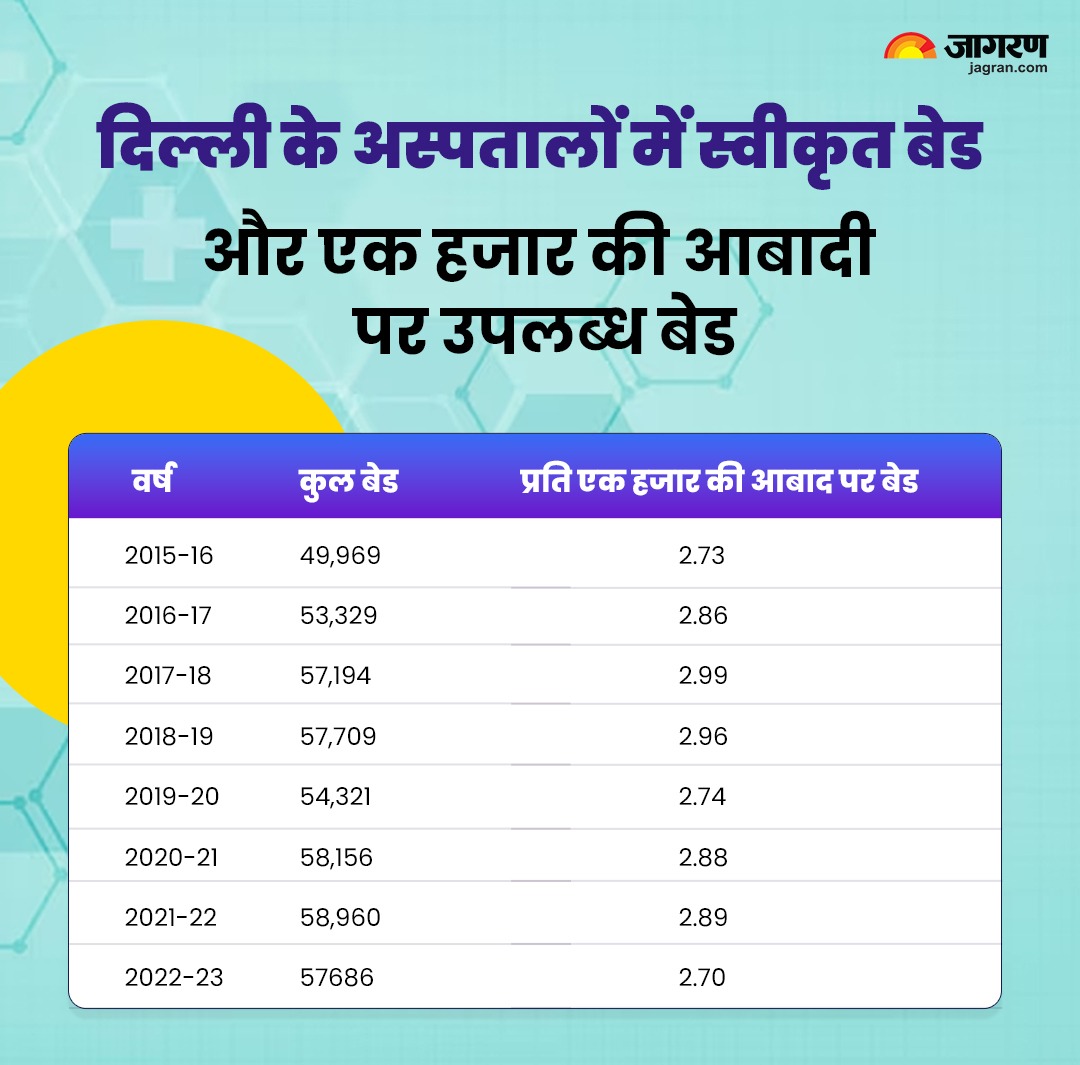 दिल्ली के अस्पतालों में स्वीकृत बेड और एक हजार की आबादी पर उपलब्ध बेड
