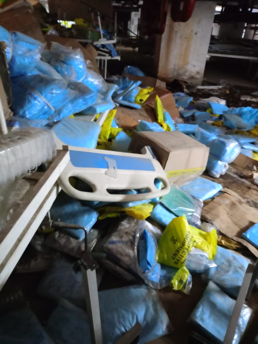 वहीं सैकड़ों की संख्या में मौजूद कार्टून भी थे। उन कार्टून की जब पड़ताल की गई तो पाया कि अधिकतर कार्टून में पीली और नीली पालिथिन में नई पीपीई किट बंद पडी थीं। इसी के साथ ग्लूकोज की बोतलें, सिरिंज दवाएं, कैनूला भी कार्टून में पड़े-पड़े सड़ रहे थे।