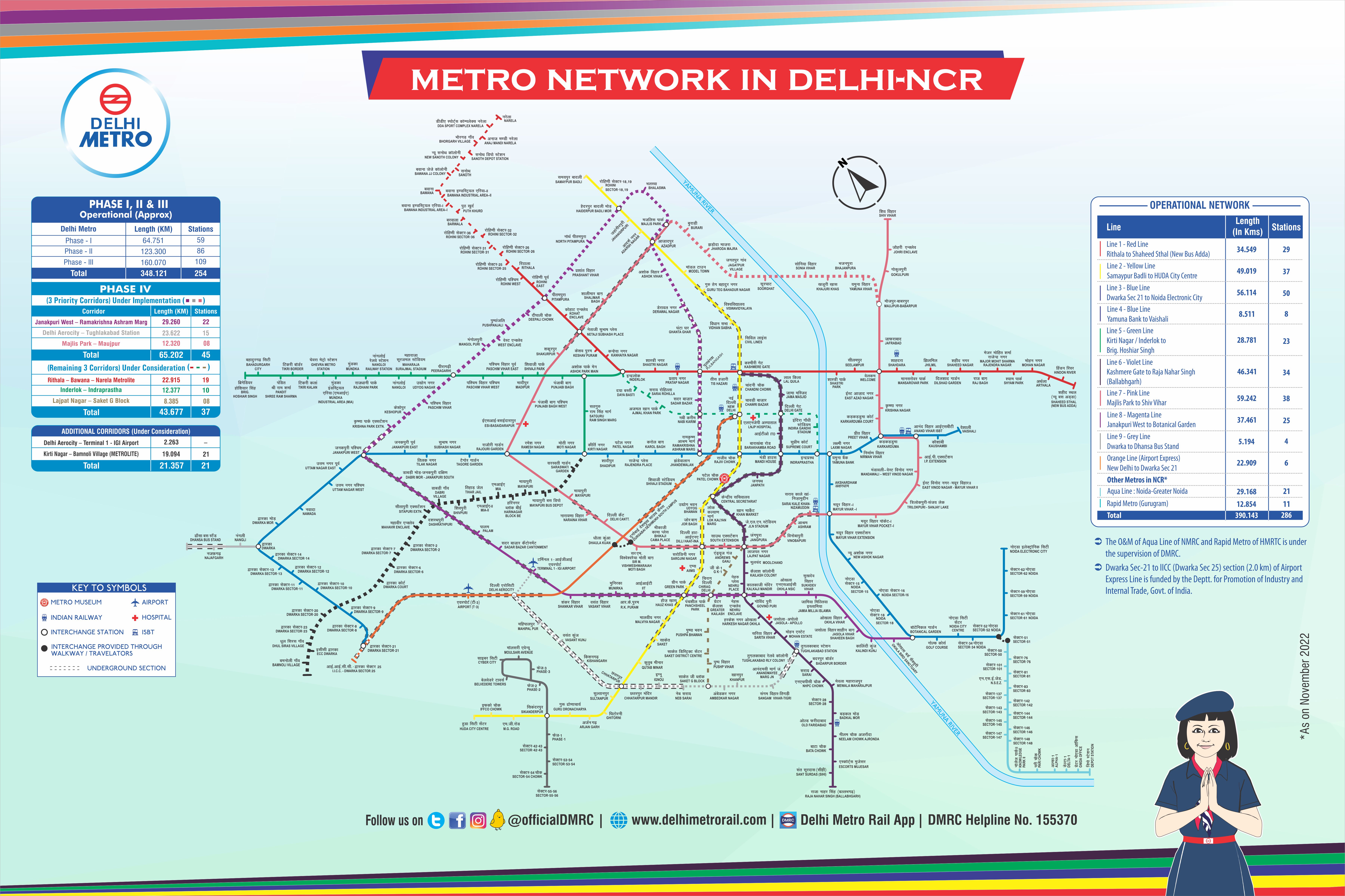 391 किमी क्षेत्र में फैली मेट्रो, कुल 286 मेट्रो स्टेशन