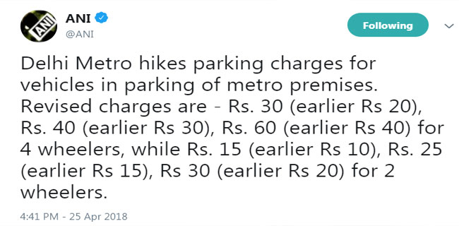 डीएमआरसी की ओर से स्पष्ट किया गया है कि पार्किंग शुल्क में बदलाव पांच साल बाद किया गया है। पार्किंग शुल्क में होने वाली वृद्धि आगामी एक मई से लागू होगी।