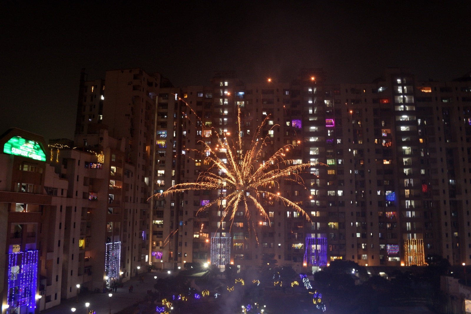 गुरुग्राम में दीप जलाते हुए, पटाखे भी फोड़ो गए