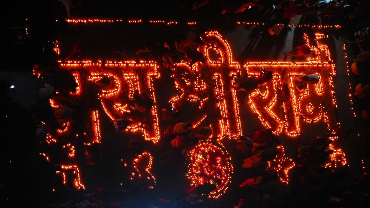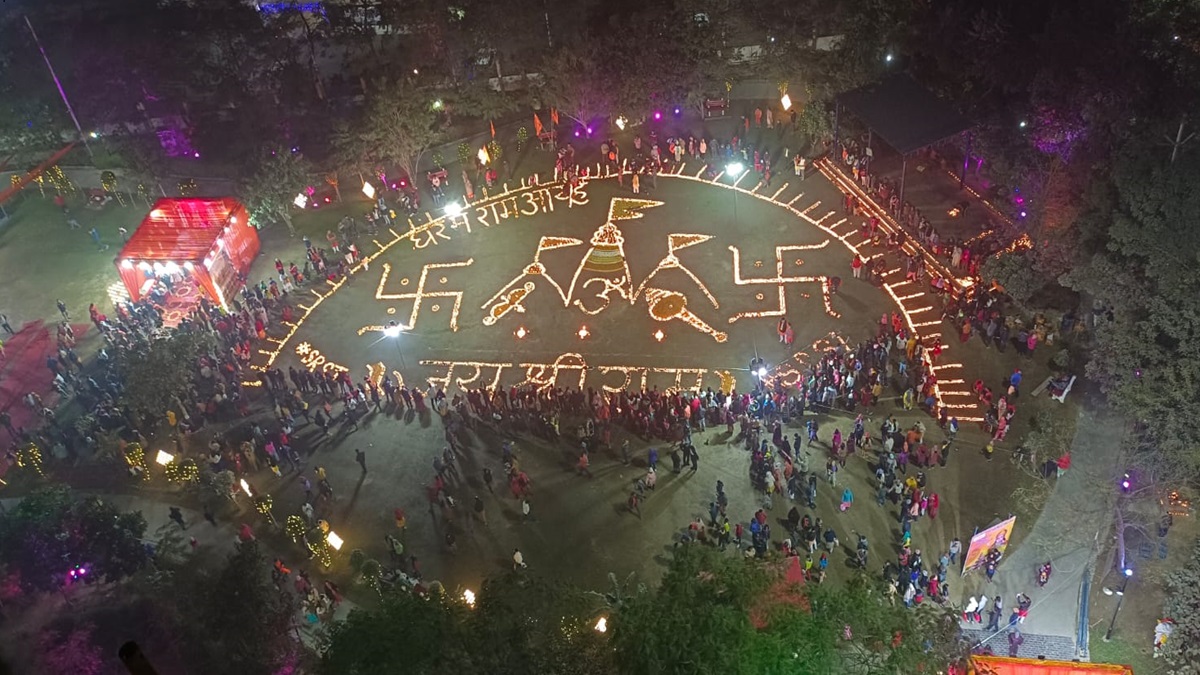 श्रीरामोत्सव के दौरान इंदिरापुरम की जयपुरिया सनराइज ग्रीन सोसायटी में दीये से लिखा जय श्रीराम।