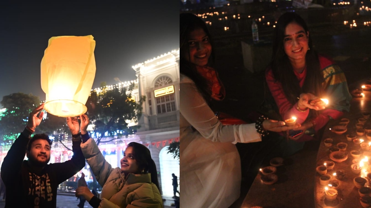 दिल्ली के कनॉट प्लेस में जलाए गए दीप