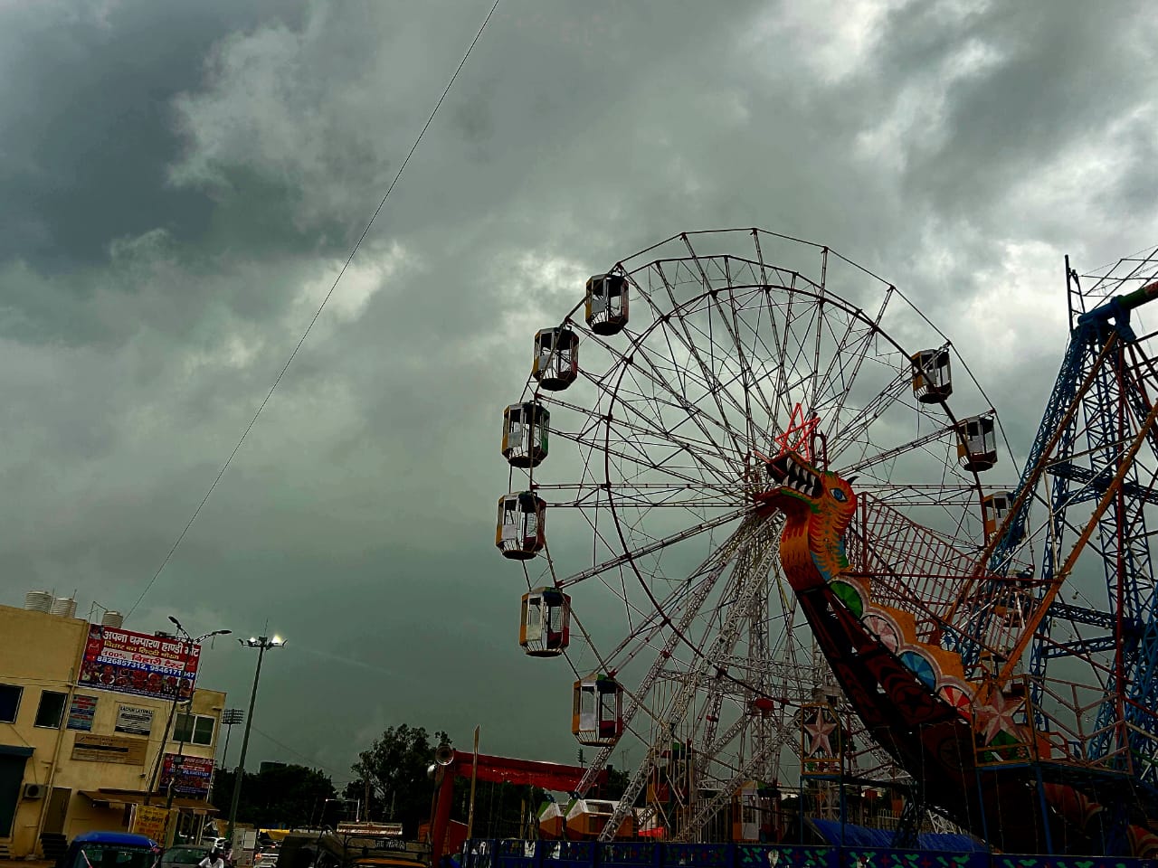 गुरुग्राम में साइबर सिटी में दिन में ही अंधेरा छा गया। अचानक मौसम बदला और ठंडी हवाओं के साथ आसमान काली बदरा में तब्दील हो गया। कई दिनों की तेज धूप और गर्मी के बाद लोगों को गर्मी से राहत मिली और मौसम सुहावना हो गया।