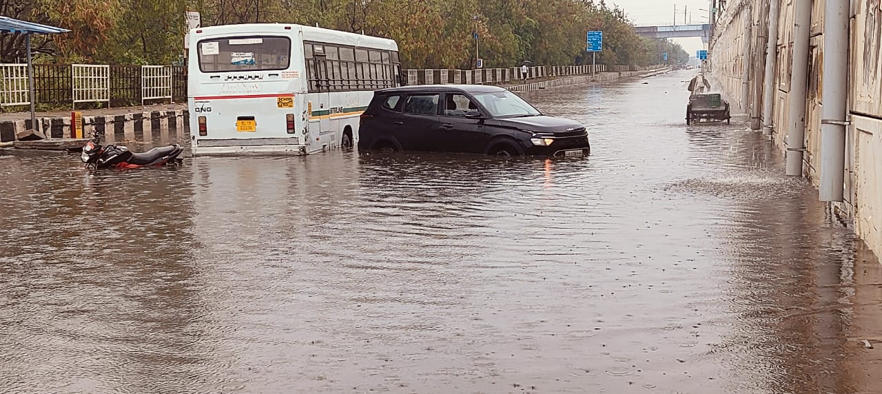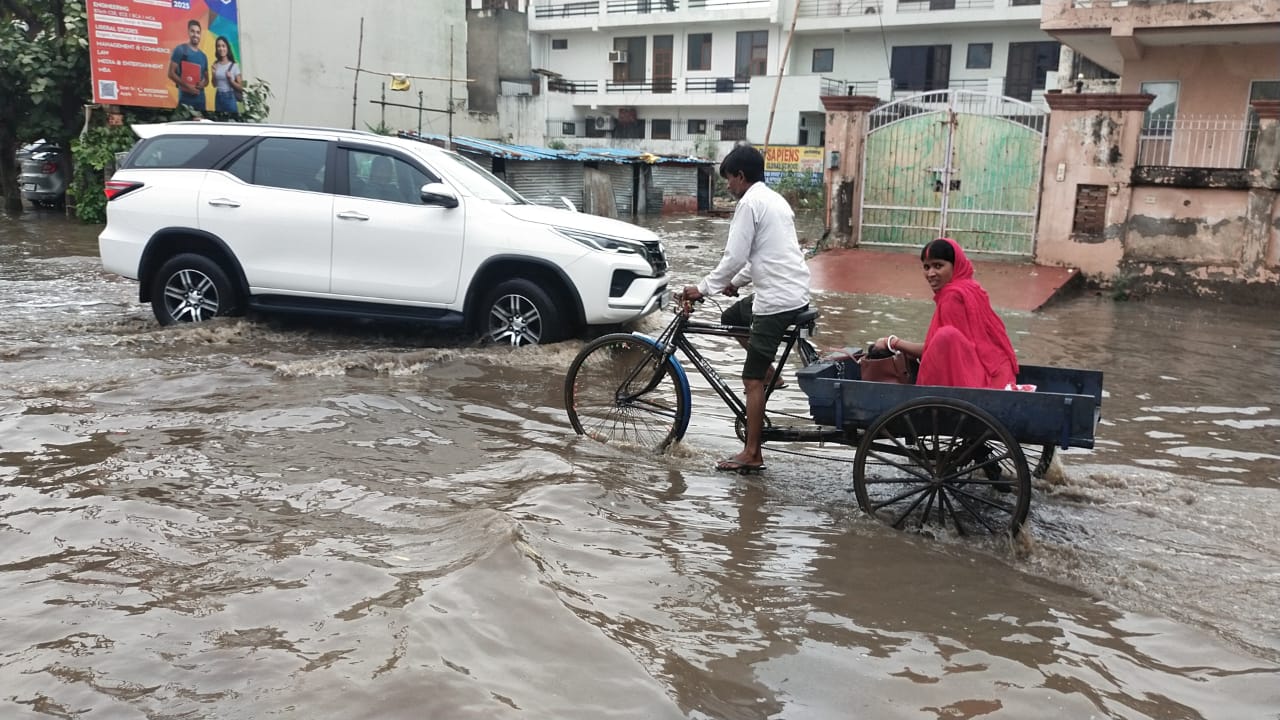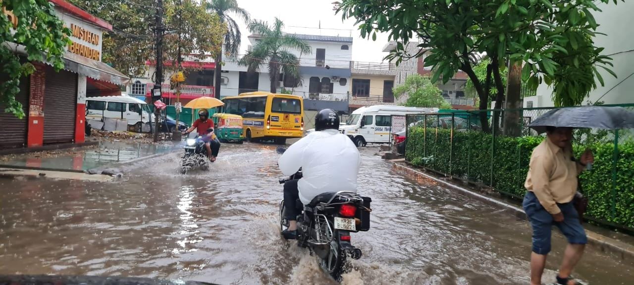 उधर, उत्तर प्रदेश के हापुड़, गाजियाबाद और नोएडा में तेज बारिश होने से सड़कों पर जलभराव हो गया है।