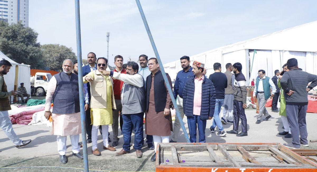 दिल्ली भाजपा अध्यक्ष वीरेंद्र सचदेवा ने रामलीला मैदान ने तैयारियों का जायजा लिया।
