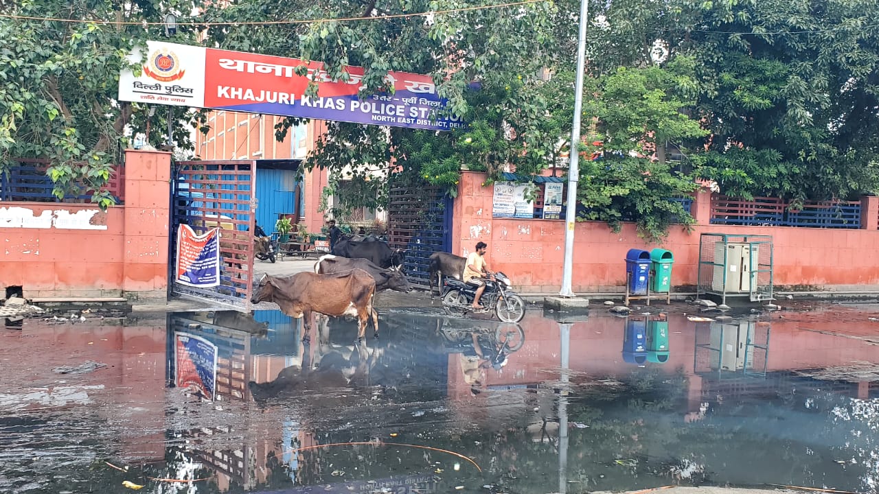 दिल्ली पुलिस के जवान अपने ही थाने में चोरों की तरह दाखिल होने को मजबूर हैं। NHAI की लापरवाही के कारण खजूरी थाने के पुलिसकर्मियों और फरियादियों को परेशानी हो रही है। दिल्ली-सहारनपुर हाईवे के निर्माण के दौरान NHAI ने सिंचाई विभाग के नाले को अंडरग्राउंड कर दिया जिससे DDA की सड़कों पर गंदा पानी भर गया है।