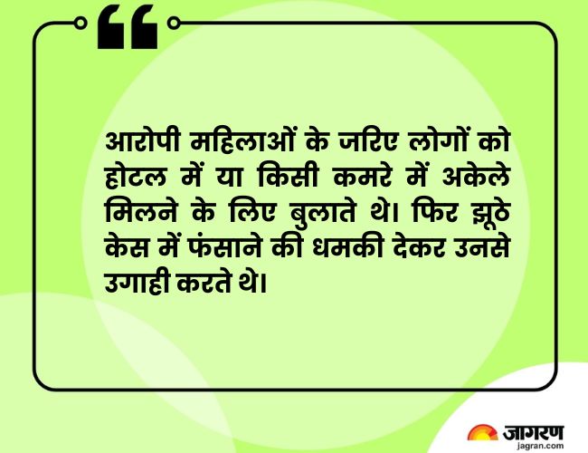 इस मामले पर क्राइम ब्रांच का कहना है कि आरोपित सोशल मीडिया के जरिए लोगों को अपने झांसे में लेते थे। महिलाओं के जरिए उन्हें होटल में या किसी कमरे में अकेले मिलने के लिए बुलाते थे। फिर झूठे केस में फंसाने की धमकी देकर उनसे उगाही करते थे। महिलाओं का बातचीत का तरीका ऐसा होता था कि कोई भी शख्स इनकी बातों में फंस जाता था।