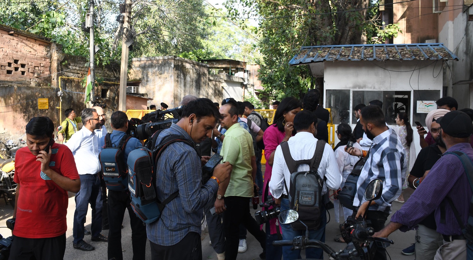 नई दिल्ली-लोधी रोड स्पेशल सेल के बाहर पत्रकार, मीडिया कर्मियों की भीड़। (फोटो- ध्रुव कुमार)