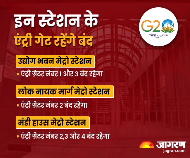 G20 Summit 2023 In Delhi आगामी जी-20 शिखर सम्मेलन के दौरान आठ से 10 सितंबर के दौरान सभी मेट्रो स्टेशन के एंट्री गेट स्टेशन प्रवेश के लिए नहीं खुलेंगे। राष्ट्रीय राजधानी में अचूक सुरक्षा व्यवस्था बनाए रखने के लिए दिल्ली पुलिस ने दिल्ली मेट्रो रेल कॉर्पोरेशन (डीएमआरसी) को एक पत्र लिखकर मेट्रो स्टेशन के कुछ गेट बंद रखने को कहा है।