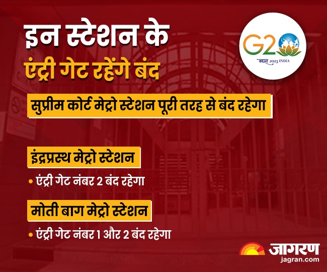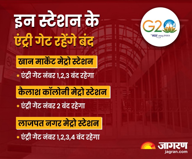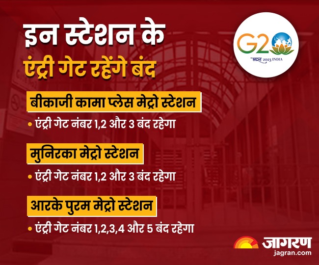 नई दिल्ली, पीटीआई। दिल्ली पुलिस ने जी20 शिखर सम्मेलन के दौरान सुरक्षा के मद्देनजर दिल्ली मेट्रो रेल कॉर्पोरेशन लिमिटेड (डीएमआरसी) को मेट्रो स्टेशन के कई एंट्री गेट बंद रखने की सलाह दी है। इसके लिए दिल्ली पुलिस की ओर से डीएमआरसी को एक पत्र भी लिखा गया है।