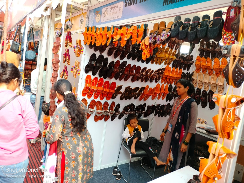 सरस मंडप में कोल्हापुरी चप्पलों के स्टाल पर दीपाली।