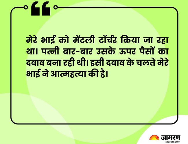 पुनीत की बहन रीना का आरोप है कि उसके भाई को मेंटली टॉर्चर किया जा रहा था। पत्नी बार-बार उसके ऊपर पैसों का दबाव बना रही थी। इसी दबाव के चलते उसके भाई ने आत्महत्या की है।