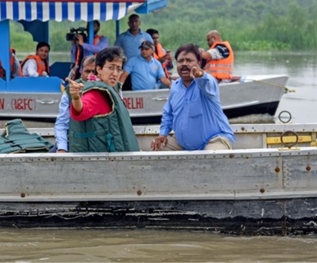 कमर तक पानी, मोटर बोट पर मंत्री, उफान पर यमुना... तस्वीरों में देखिए दिल्ली में कैसे बने बाढ़ जैसे हालात