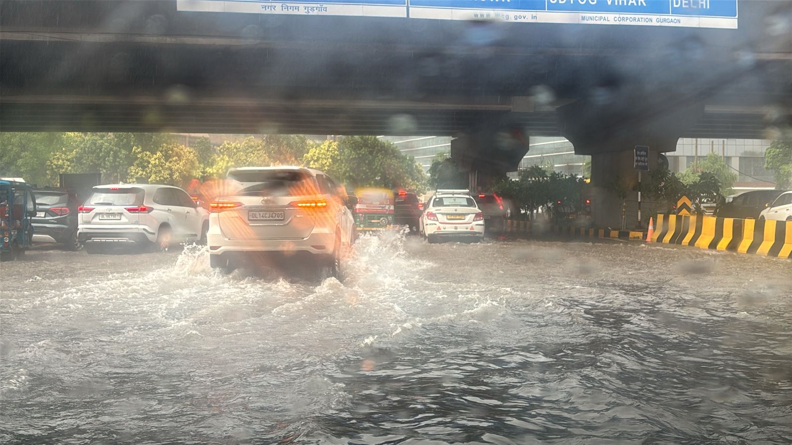 गुरुग्राम के डीएलएफ इलाके में जलभराव।