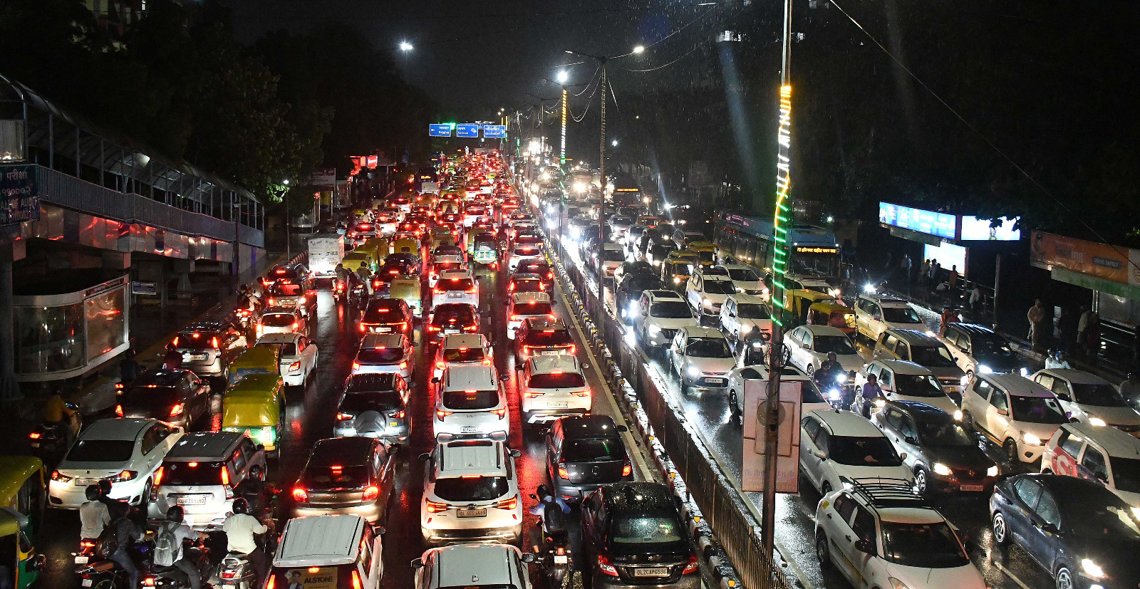 नई दिल्ली-वर्षा के कारण आईटीओ विकास मार्ग पर लगा यातायात जाम। ध्रुव कुमार