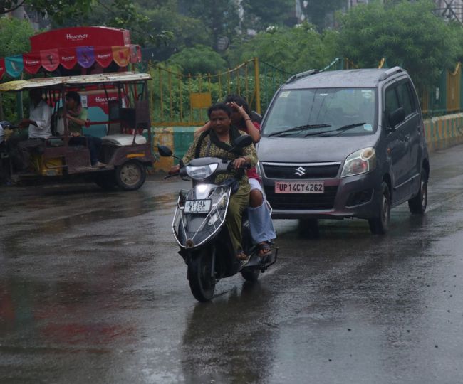 इंदिरापुरम में हल्की वर्षा में गुजरते वाहन : जागरण