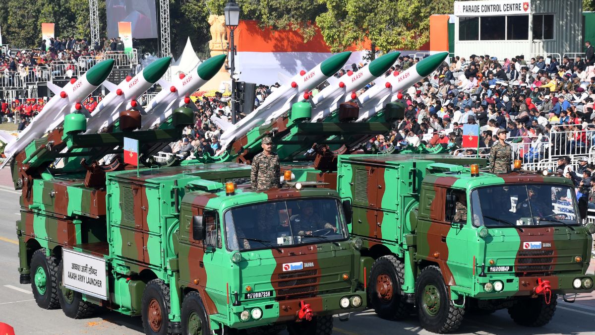 कर्तव्य पथ पर गणतंत्र दिवस परेड में भाग लेती आकाश मिसाइल। फोटो- ध्रुव कुमार