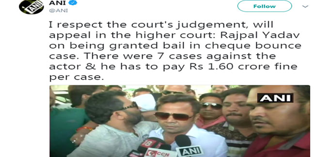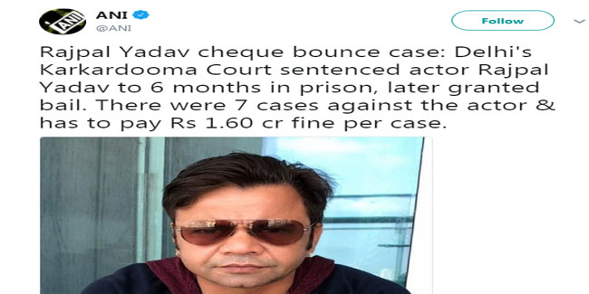 बता दें कि 20 अप्रैल, 2018 को कड़कड़डूमा कोर्ट ने राजपाल यादव व उनकी पत्नी राधा राजपाल यादव और उनकी कंपनी को चेक बाउंस के सात मामलों में दोषी करार दिया था।
