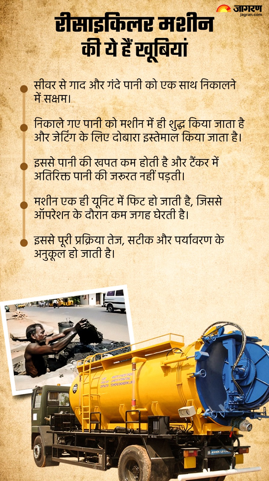 जागरण संवाददाता, दक्षिणी दिल्ली। मानसून से पहले दिल्ली में जलभराव की समस्या से निपटने और सीवर सफाई को आधुनिक तकनीक से जोड़ने के लिए दिल्ली सरकार ने रविवार को ग्रेटर कैलाश में रिसाइक्लर मशीन का सफल ट्रायल किया। यह अत्याधुनिक मशीन मुंबई से मंगवाई गई है।