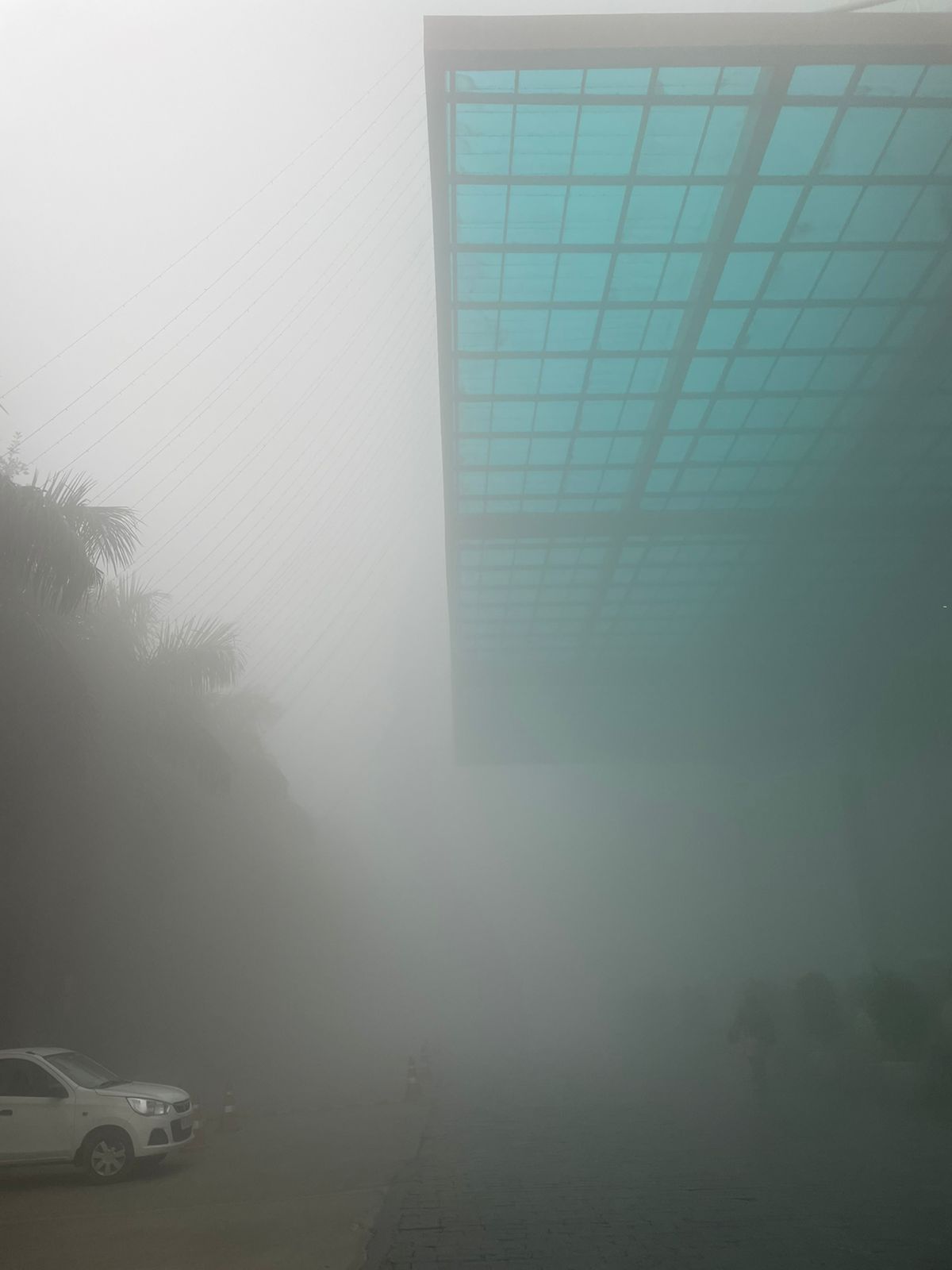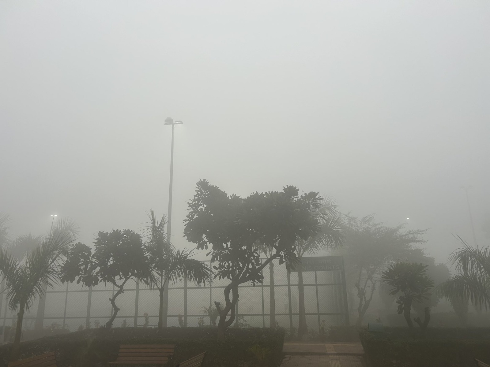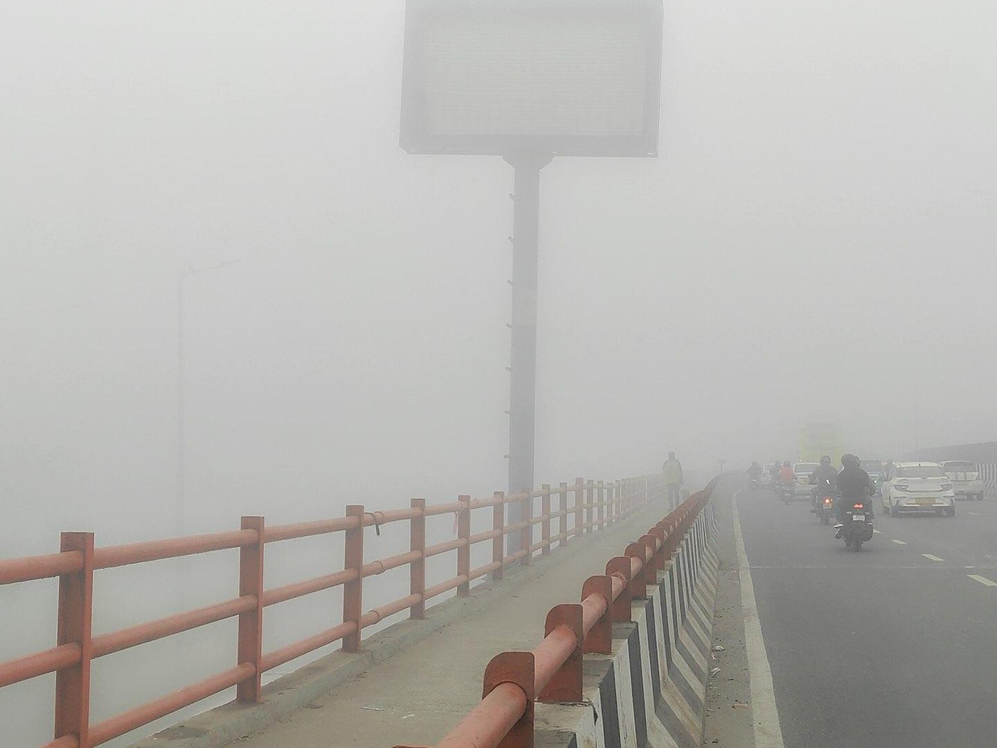 दिल्ली से सटे गुरुग्राम में भी घना कोहरा छाया हुआ है। इससे दृश्यता 10 मीटर से भी कम हो गई है।