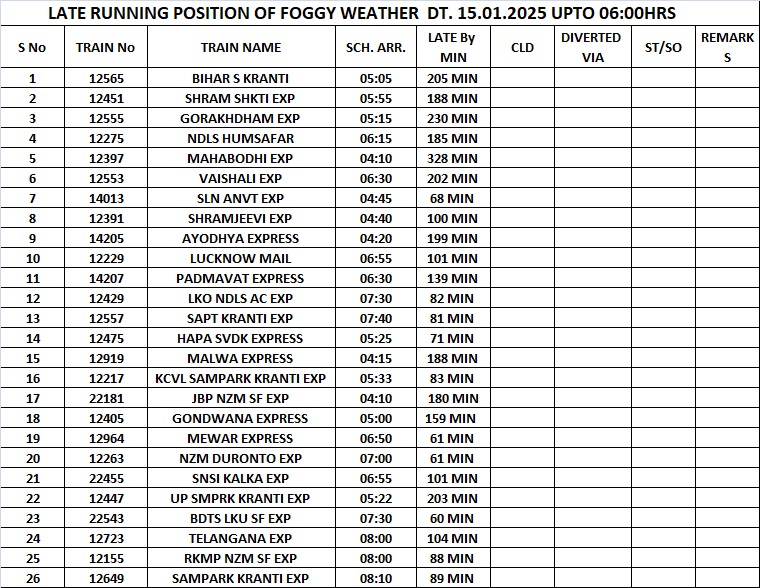 वहीं, लंबी दूरी से दिल्ली आने वाली दर्जनों ट्रेनें कई घंटों की देरी से चल रही हैं।