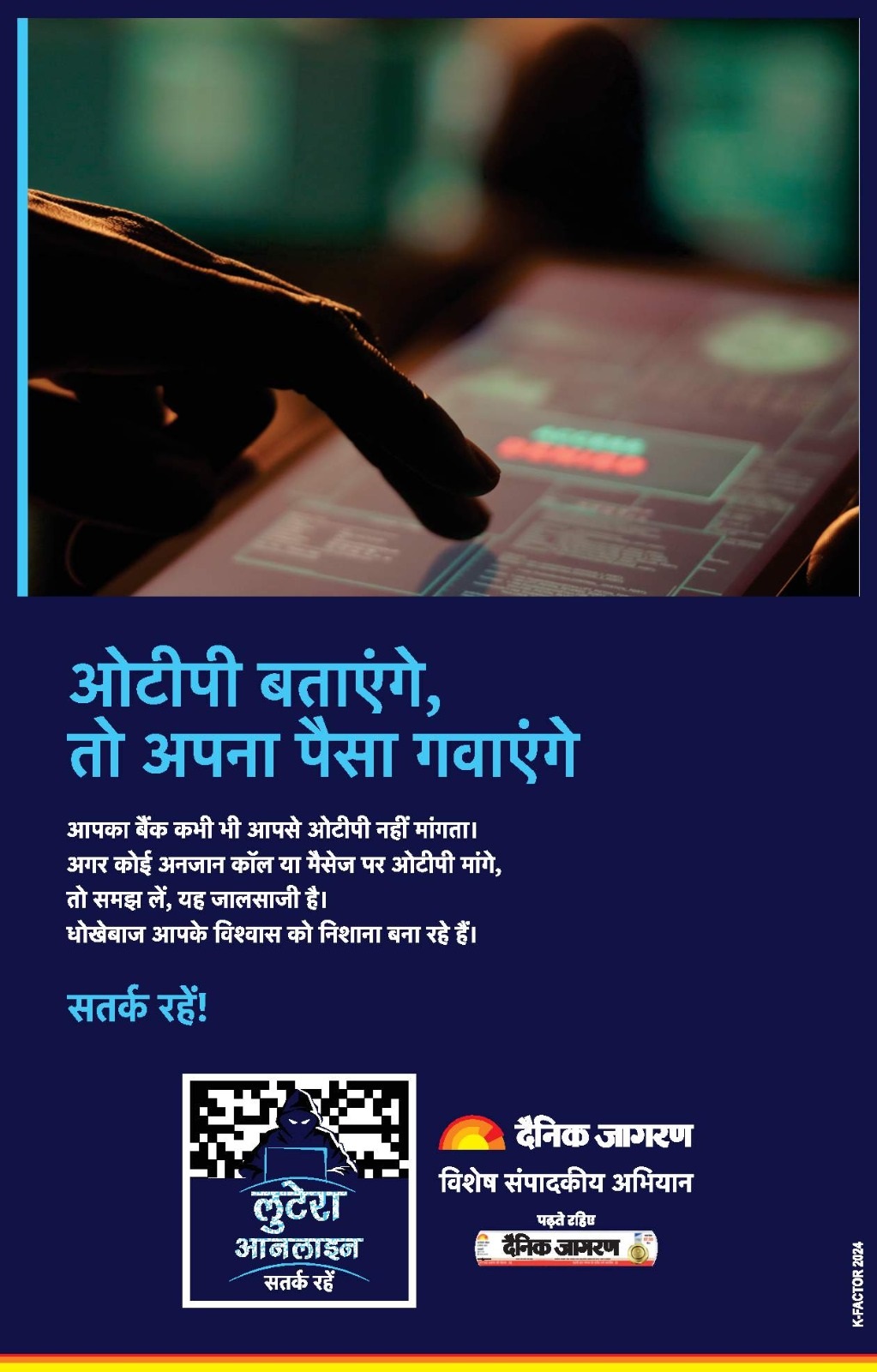 दैनिक जागरण साइबर फ्रॉड व साइबर ठगों से अपने सुधि पाठकों को जागरूक करने के लिए 'लुटेरा ऑनलाइन: सतर्क रहें' नाम से जागरुकता अभियान चला रहा है। 'लुटेरा ऑनलाइन: सतर्क रहें' सीरीज का पार्ट-1 कल पढ़िए www.jagran.com पर...
