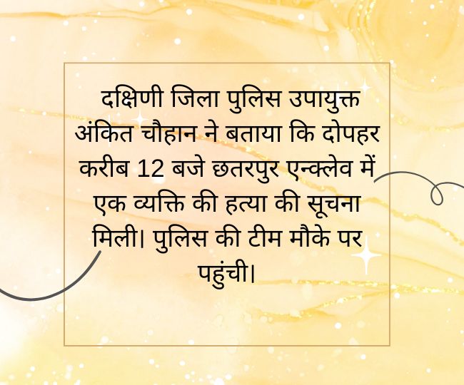 पुलिस को छतरपुर एन्क्लेव में एक व्यक्ति की हत्या की मिली सूचना