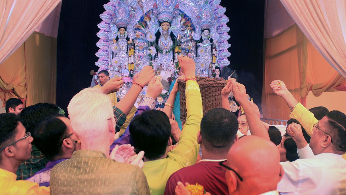 मिंटो रोड दुर्गा पूजा पंडाल में पहुंचे बांग्लादेश के मोहनपुर सुटिया गांव से ढाकिया मनोरंजन धराई ने बताया कि वह कई वर्षो से अपने साथियों संग लगातार दिल्ली आ रहे हैं।