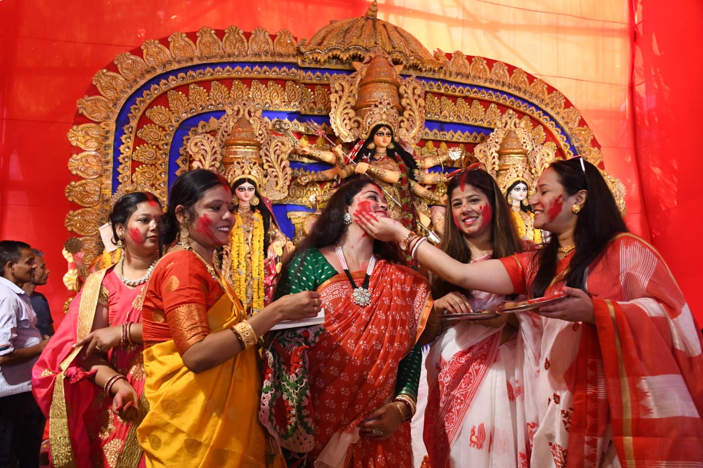 इस मौके पर दुर्गा मां को अगले वर्ष फिर से आने के लिए आमंत्रण भी दिया जाता है। इस आयोजन में ज्यादातर महिलाएं लाल और सफेद रंग मिली-जुली साड़ी पहनती हैं। एक दूसरे को सिंदूर लगाकर शुभकामनाएं देने के बाद पंडालों में होली जैसा माहौल होता है।