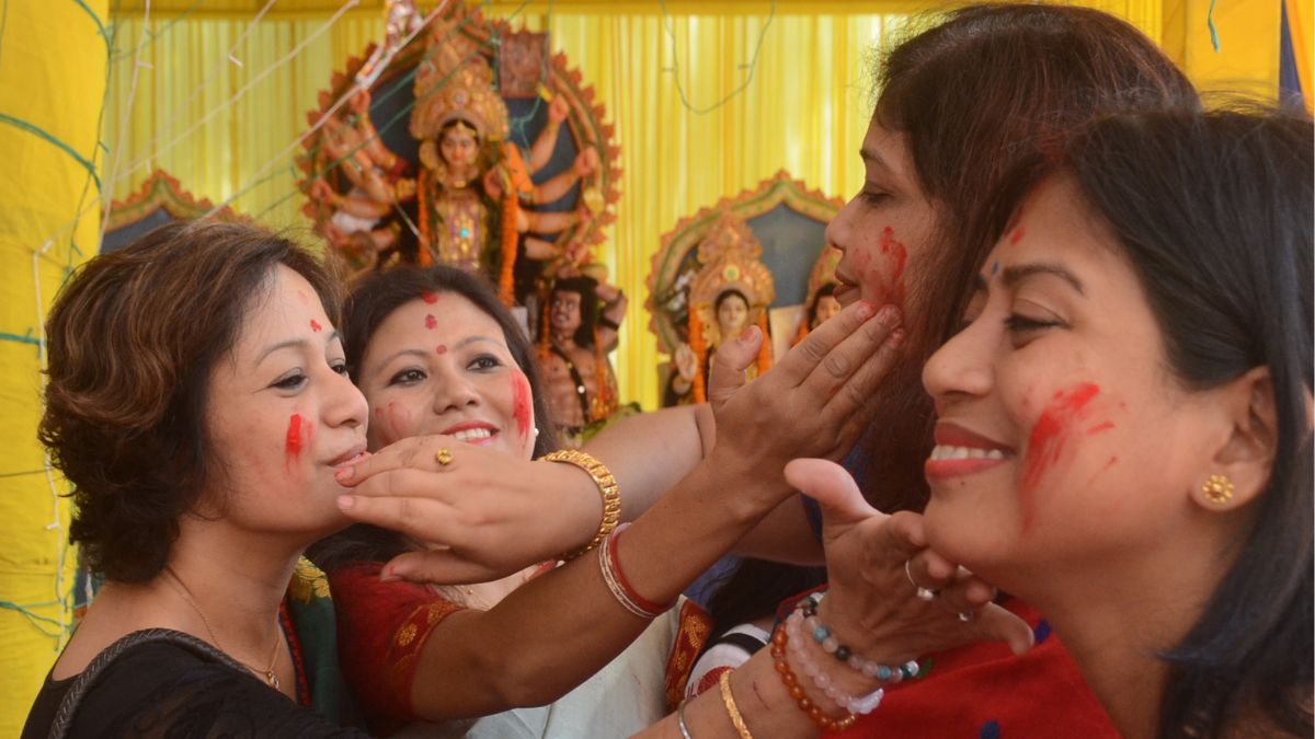 वैसे तो नवरात्र के पहले दिन से ही घरों में मां दुर्गा की पूजा शुरू होती है। लेकिन, पूजा पंडालों में पांच दिन की विधिवत पूजा के बाद बंगाली परंपरा के अनुसार सिंदूर खेला के लिए महिलाओं में अलग ही उत्साह देखा जाता है।