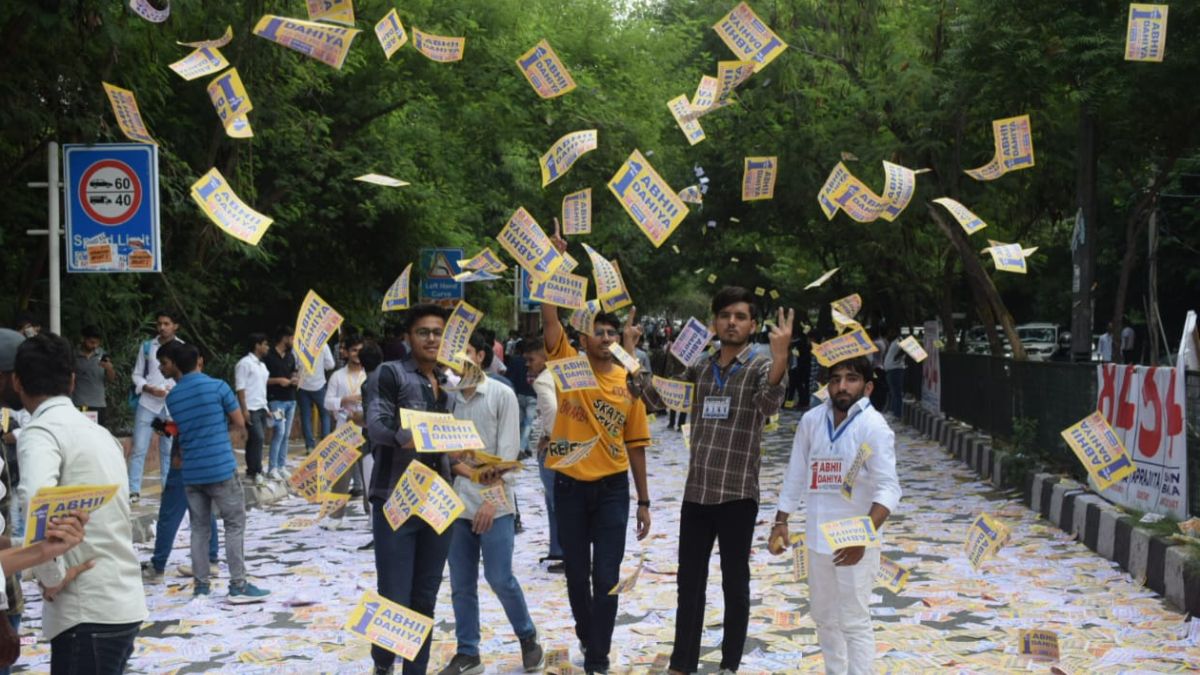 छात्र पहले ईवीएम के जरिये डूसू प्रतिनिधि के लिए मतदान कर रहे हैं। इसके बाद वे कॉलेज के प्रतिनिधियों को चुनने के लिए बैलेट पेपर पर मुहर लगा रहे हैं।