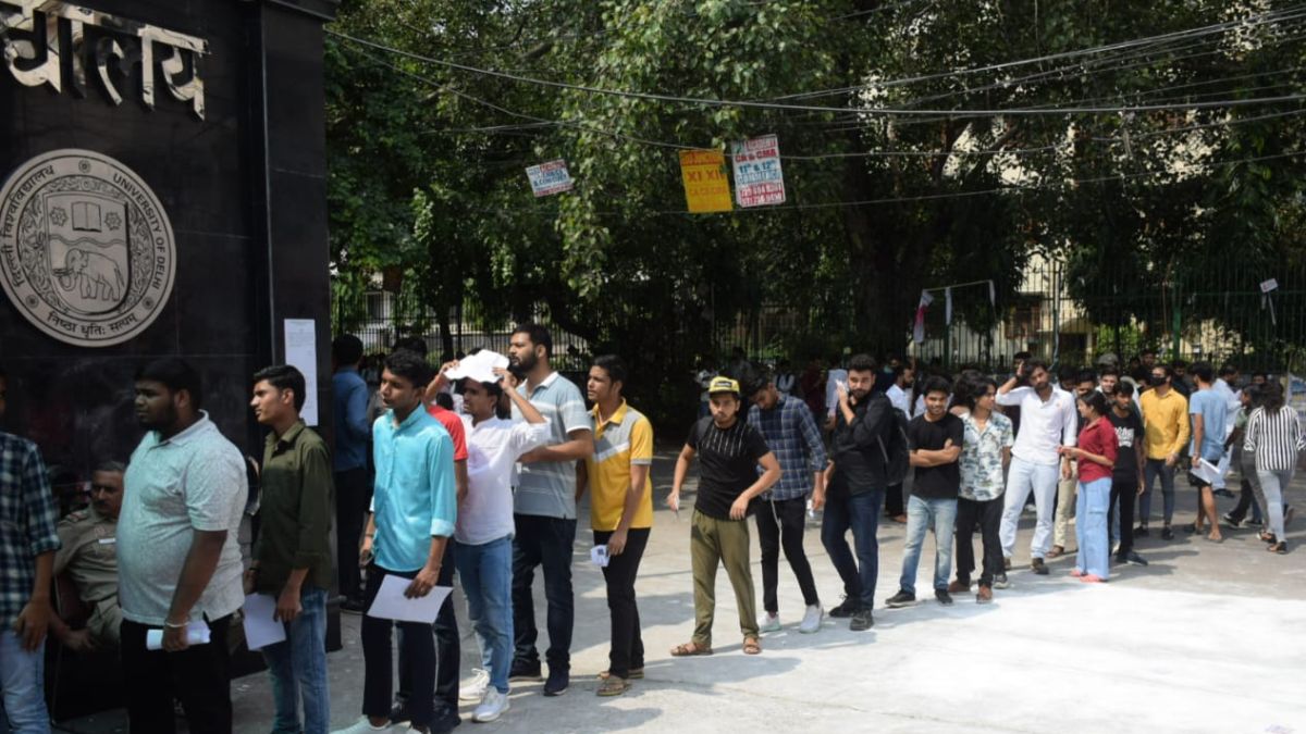 डीयू के अलग-अलग कॉलजों में बने बूथ में छात्रों की कतार देखी जा रही है।