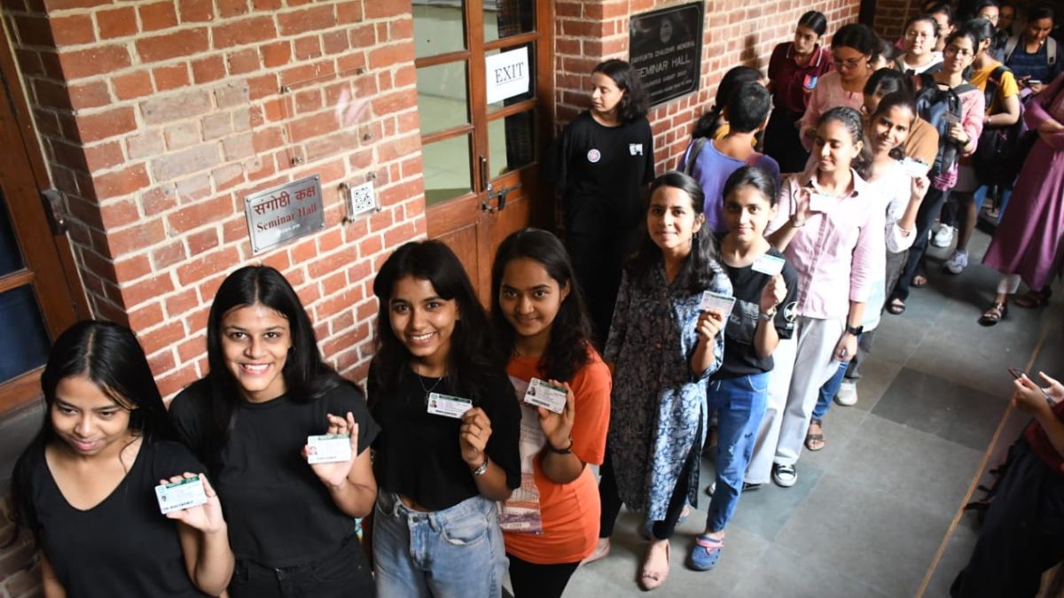 DUSU Election के लिए 3 साल बाद हो रही वोटिंग, छात्र-छात्राओं में दिख रहा गजब का उत्साह; देखें तस्वीरें
