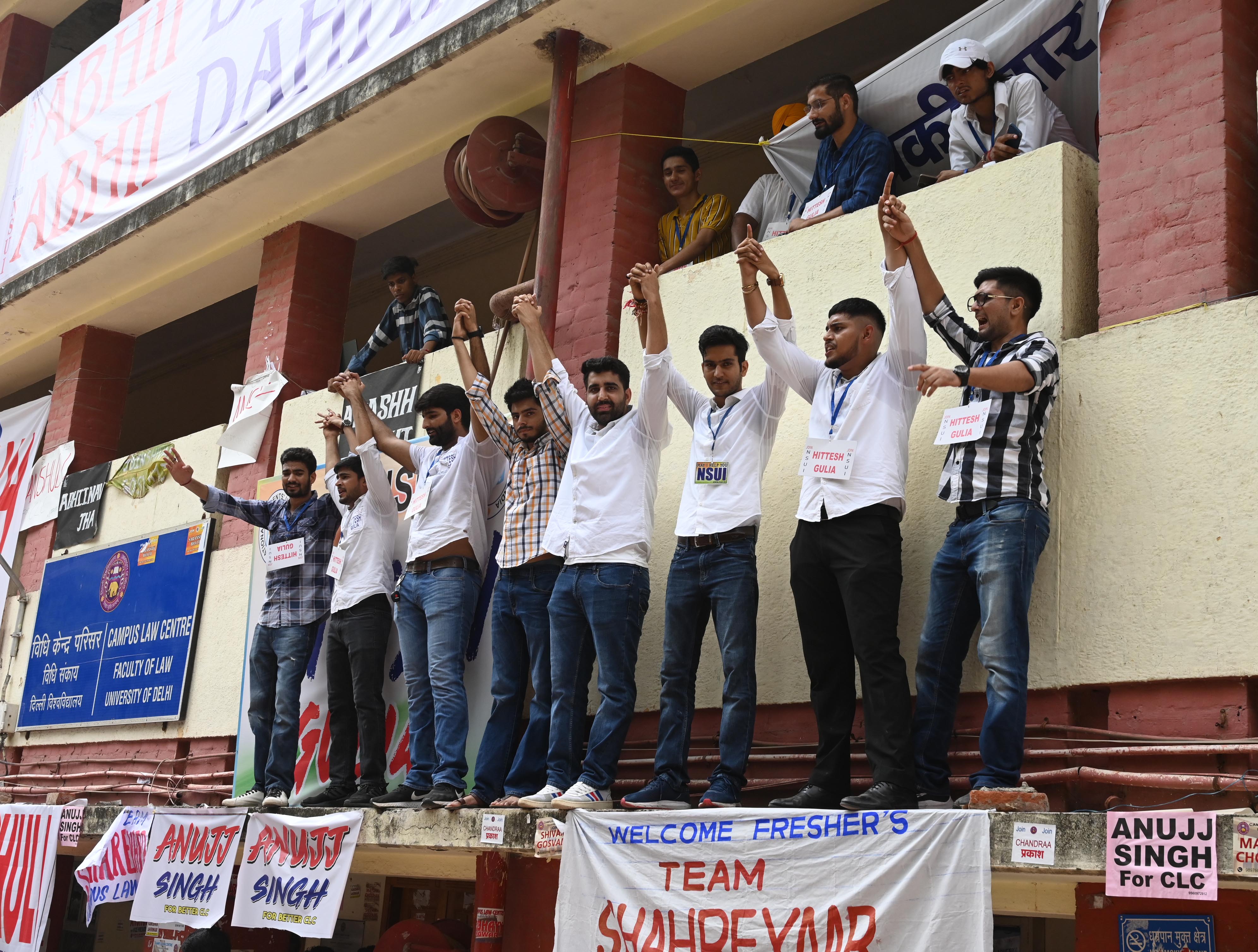 डूसू चुनाव के लिए कुछ इस तरह प्रचार करते एनएसयूआई केे उम्मीदवार व पदाधिकारी।