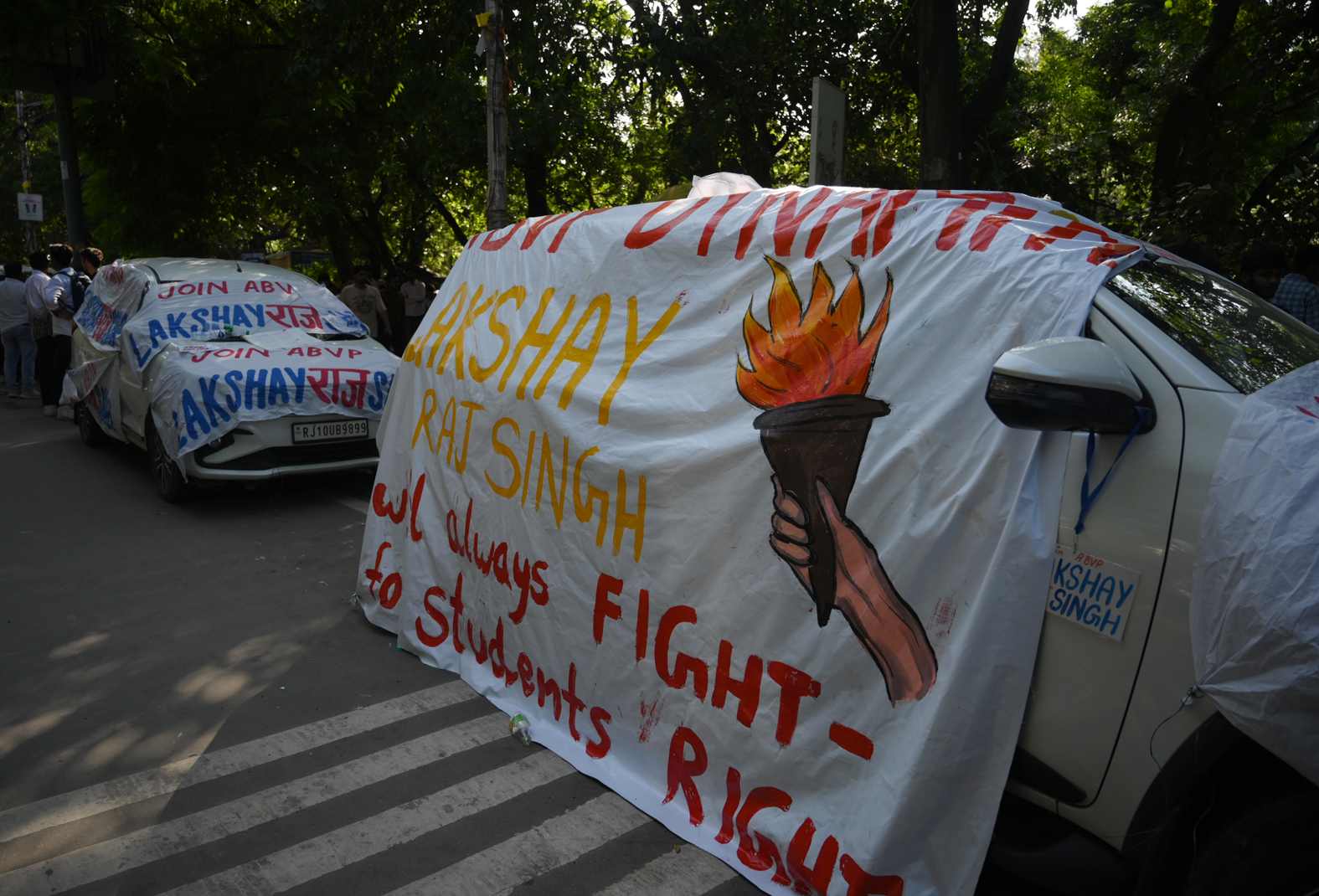 छात्र संघ चुनाव का प्रचार- प्रसार जोरो पर है , दिल्ली विश्वविद्वालय मार्ग पर कपड़े पर पेटिंग कर वाहनों पर कुछ इस से प्रचार- प्रसार कर रहे छात्र । चंद्र प्रकाश मिश्र
