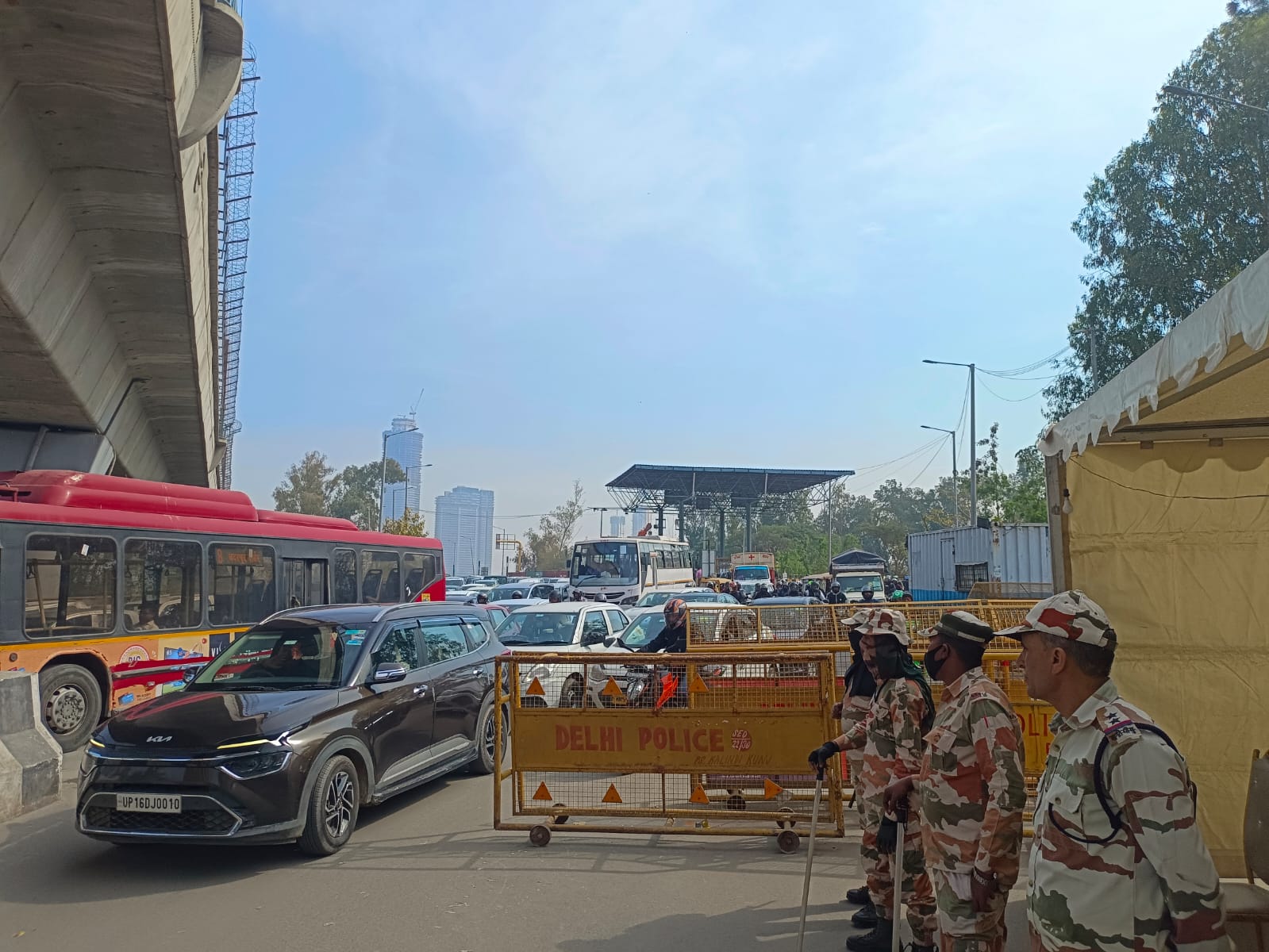 किसान संगठनों द्वारा दिल्ली कूच का आह्वान किया गया है। दिल्ली पुलिस ने कालिंदी कुंज बॉर्डर पर बैरिकेडिंग लगाई है और लगातार वाहनों की जांच भी हो रही है। इसलिए यहां पर यातायात धीमी गति से चल रहा है। इससे यहां पर लोगों को काफी परेशानी हो रही है।